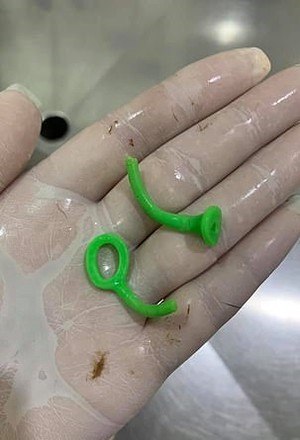 Em uma operação que durou mais de uma hora, os 32 patinhos foram removidos, além de outros pedaços de plástico...