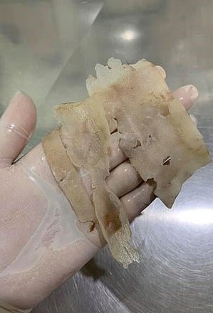 ...E um petisco de pele de vaca que ainda não havia sido digerido