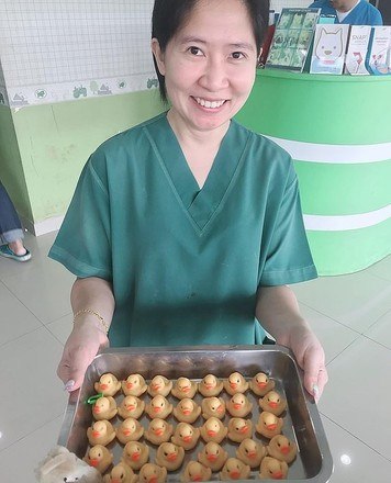 "Meu cachorro costuma saber a diferença entre o que é comestível e o que não é, mas dessa vez ele acabou com esses patinhos", disse Nong