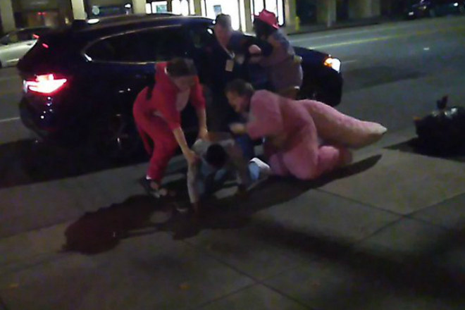De acordo com o canal NBC Bay Area, o evento já estava encerrado quando Kin Z. Shiratsuki testemunhou a agressão dentro de um carro ao virar em uma esquina próxima