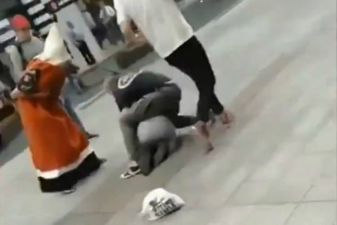 Sem nenhum pudor, ele acertou o mascote na cabeça. O incidente só não atingiu maior gravidade devido à intervenção de testemunhas