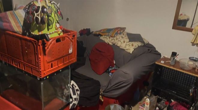 Havia pratos sujos, tapetes imundos, restos de cigarros e rastros de usos de drogas. Além de uma COBRA de estimação