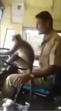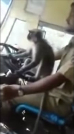 O motorista de ônibus M. Prakash foi suspenso por deixar um macaco pilotar seu veículo com 30 passageiros por cerca de 10 minutos, em Bangalore, na Índia. As imagens viralizaram na web e receberam reações mistas dos internautas