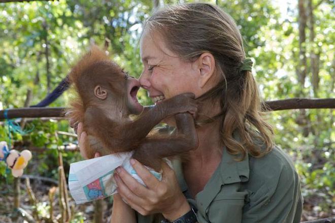 O homem trabalha para a Borneo Orangutan Survival Foundation, uma organização sem fins lucrativos que ajuda na conservação desses grandes primatas