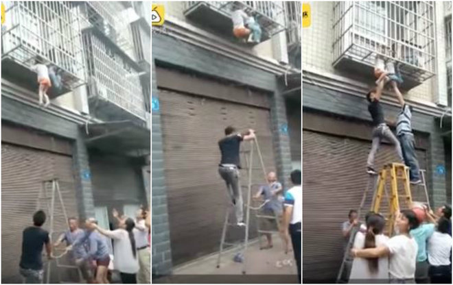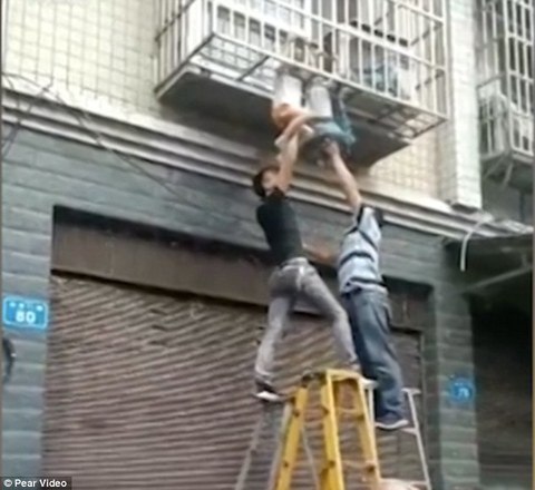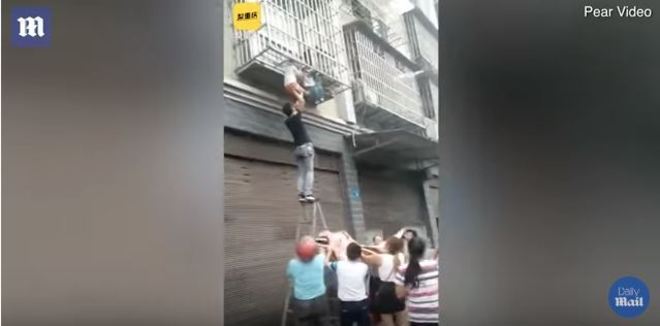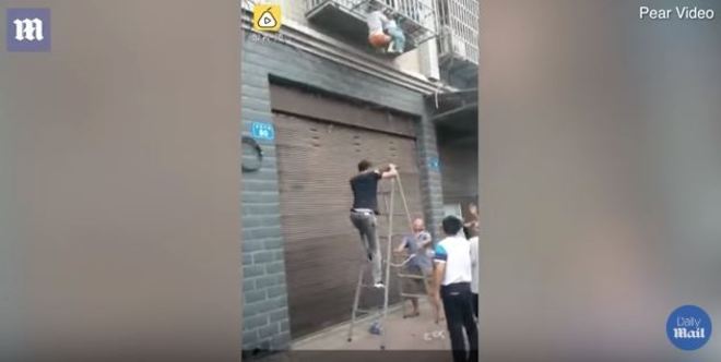 Com um conjunto de escadas, eles conseguiram subir e impedir que elas morressem