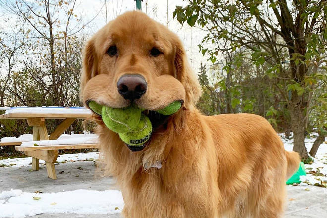 Enquanto compartilhava a habilidade dele nas redes, Erin notou que Finley havia batido o recorde mundial no quesito: em 2003, o Guinness registrou um golden retriever com a capacidade de abocanhar cinco bolas ao mesmo tempo