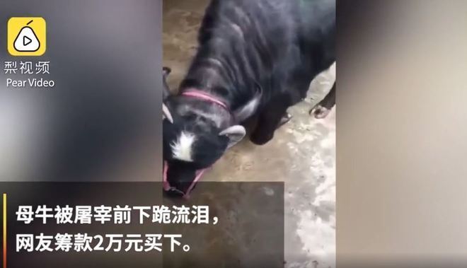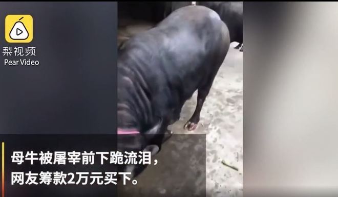 Um vídeo gravado em um matadouro no sul da China cortou o coração da web: uma vaca se ajoelha e chora em frente aos funcionários do abatedouro na hora da morte e derramou lágrimas. Segundo a mídia local, ela estava grávida e implorava para não ser morta