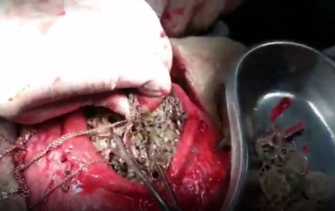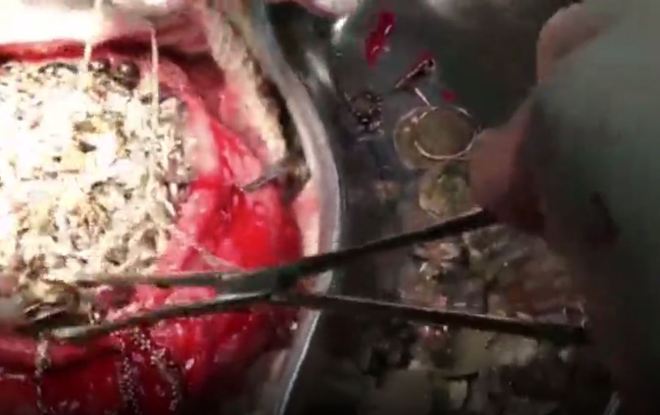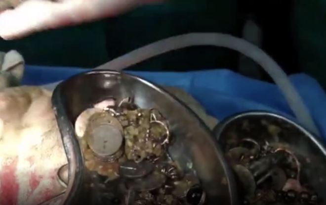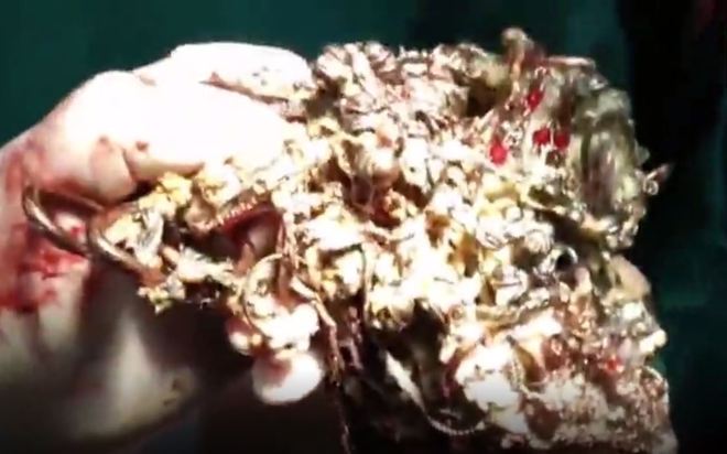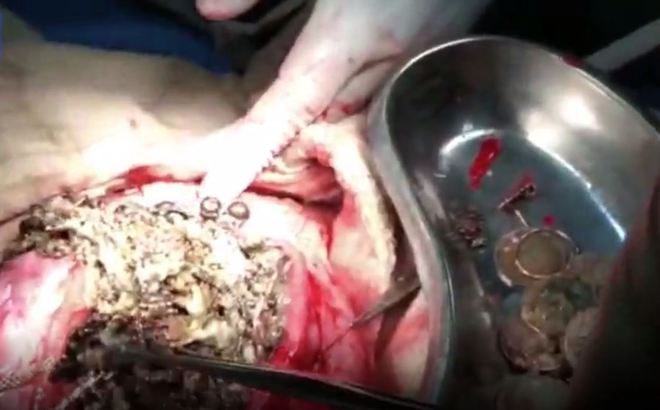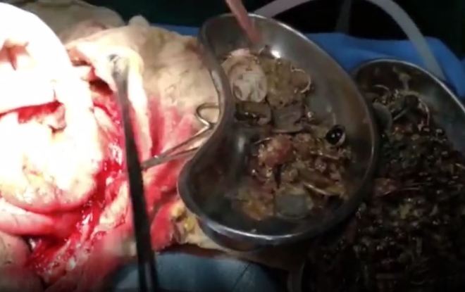 A operação durou pouco mais de uma hora, onde os médicos removeram com sucesso 1,5 kg de objetos de valor