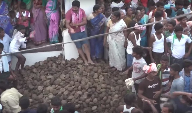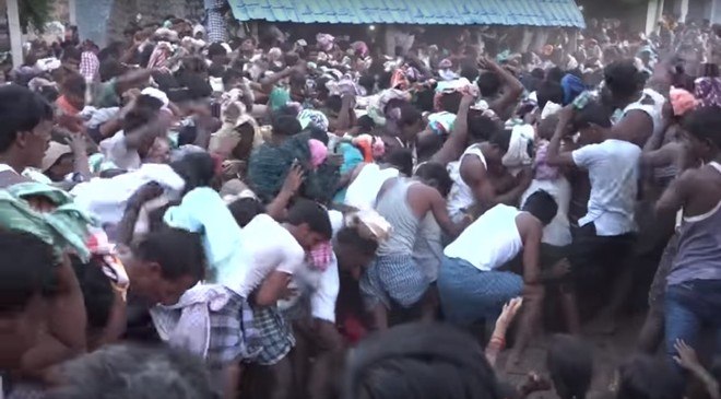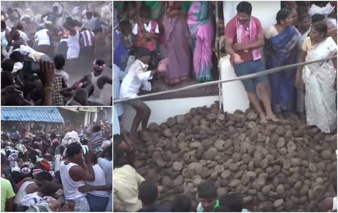 Moradores do vilarejo de Kairuppala, na Índia, realizam todos os anos um evento que chama a atenção do mundo: uma guerra de estrume. Segundo a tradição dos locais, a atração é um símbolo de prosperidade para seus participantes