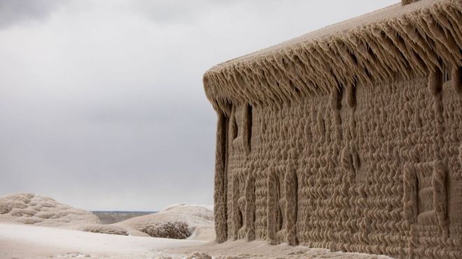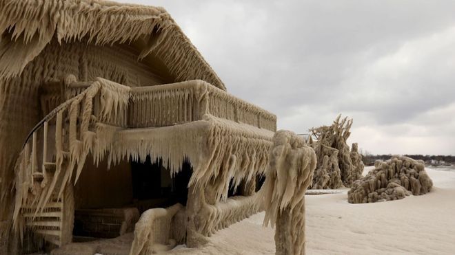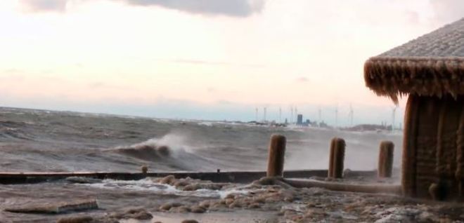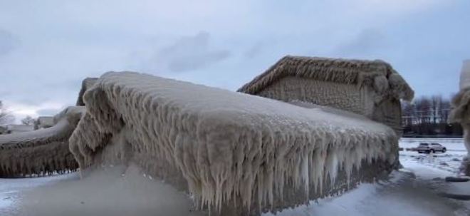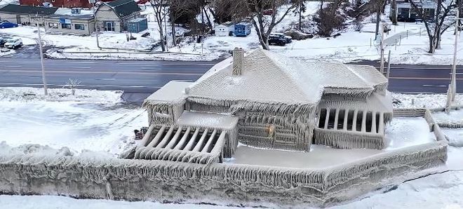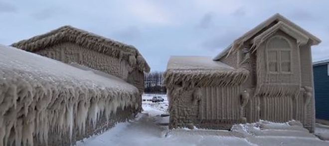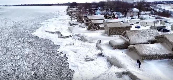 Ventos fortes + ser vizinho de um lago + temperaturas abaixo de zero = casa congelada