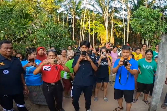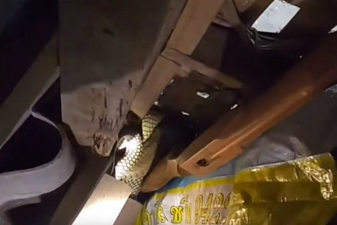 Segundo o serviço britânico de notícias do Yahoo, Chanthana Paiboon, 50, assistia TV ao lado do filho quando um dos vizinhos a alertou sobre a entrada do réptil no local
