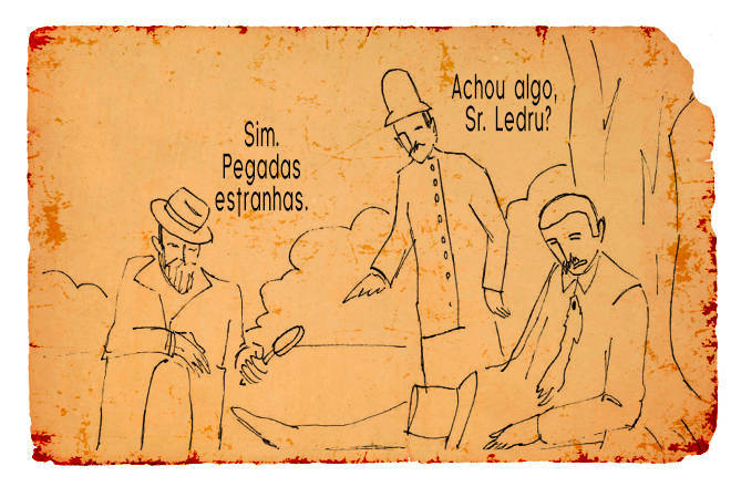 Já na cena do crime, Ledru notou pegadas ao redor do corpo. Ao analisá-las com mais cuidado, constatou que o pé direito estava marcado com menos profundidade do que o esquerdo, o que poderia indicar a falta de um dos dedos do membro