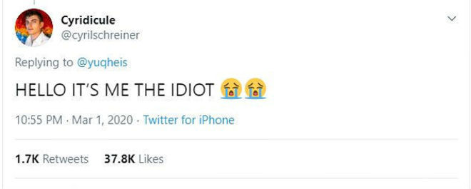 O próprio Cyril se apresentou para dizer que a ideia idiota foi dele, o que mostra que ao menos ele tem senso de humor