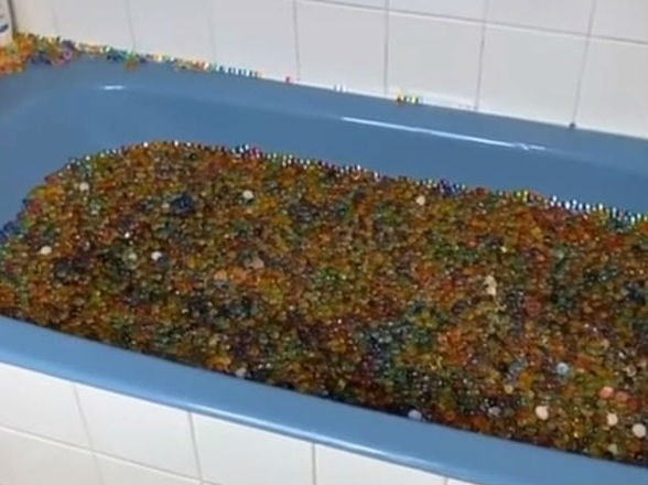 No vídeo (publicado dia 27), ele afunda na banheira com gel e parece se divertir