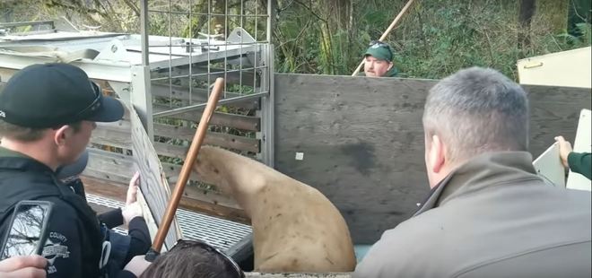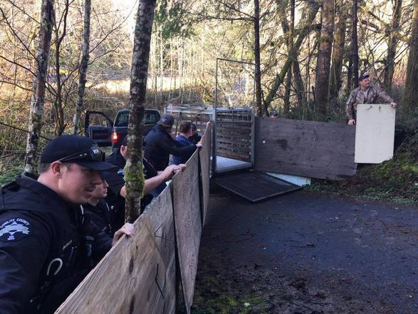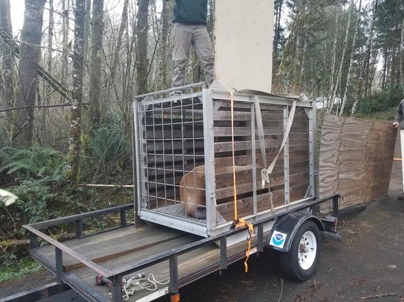 Eles estavam esperando integrantes do Departamento de Peixes e Vida Selvagem de Washington com um trailer apropriado para o transporte
