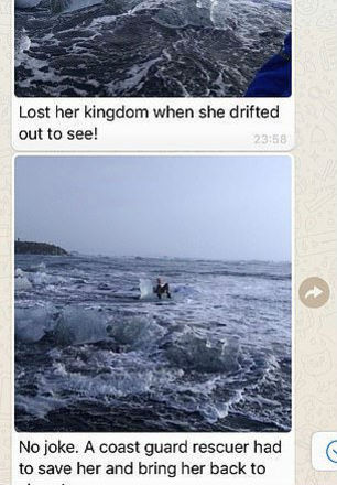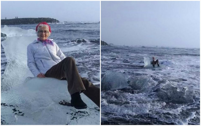 Outra idosa teve problemas com gelo, ao posar para uma foto num trono gelado e ser levada para o mar. Veja a seguir!