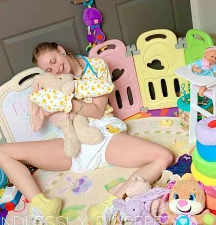 Ela então brinca com seus brinquedos e cria conteúdo online para a comunidade de adultos e amantes de fraldas (ABDL). O objetivo da vida de Paigey Miller é normalizar o estilo de vida que ela adotou desde maio de 2018