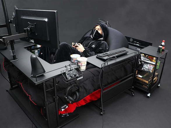 Quando você achava que as cadeiras gamers seria o melhor artefato a unir conforto e horas ininterruptas de jogatina, descobrimos no catálogo da loja japonesa Bauhutte o que pode ser a próxima tendência no sedentarismo: a CAMA GAMER
