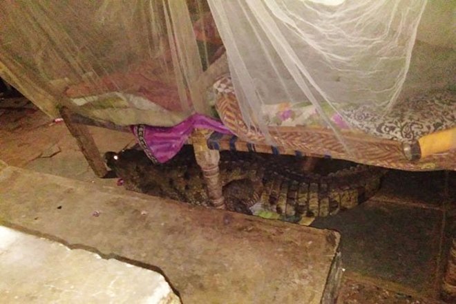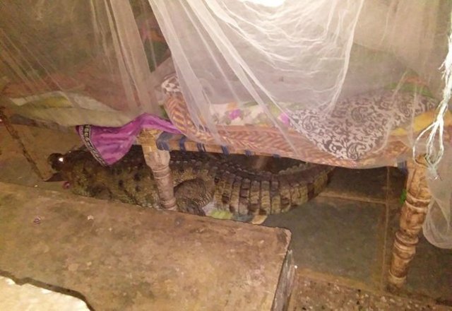 Um agricultor indiano que mora no estado de Gujarat acordou no meio da noite para investigar um barulho. Nada anormal. Mas descobriu um crocodilo de 2,4 m passeando alegremente pelo quarto dele. Uma olhada atenta o fez descobrir o que estava por trás dessa situação estranha