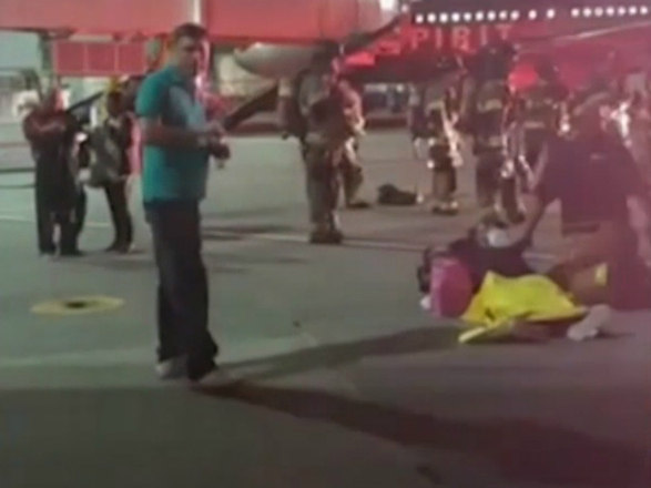 Os 220 ocupantes do voo foram desembarcados na pista do aeroporto local. A preocupação era que alguma substância química estivesse causando o mal estar