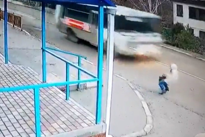 E milagrosamente nenhuma das rodas do micro-ônibus chegou a tocá-la