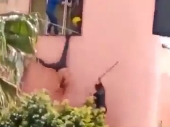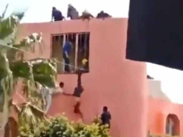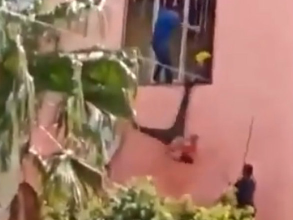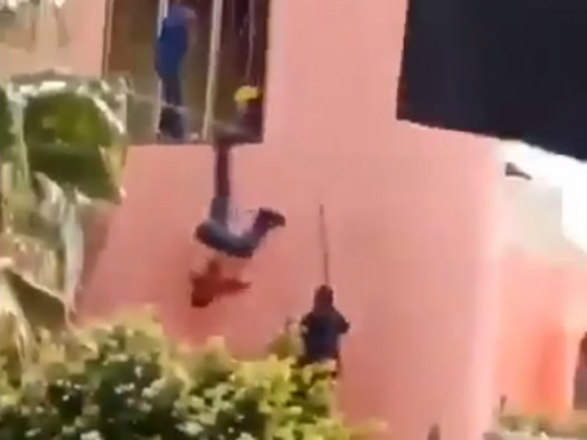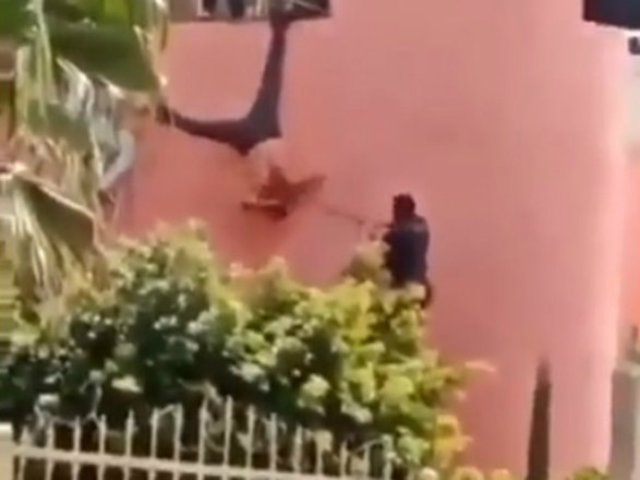 Um homem suspeito de roubar uma caminhonete na cidade de Tonalá, no México, acabou pendurado em uma janela e feito de "pinhata" pela polícia local