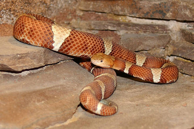 Tratava-se de uma serpente peçonhenta comum em diversas áreas dos EUA conhecida como cabeça-de-cobre