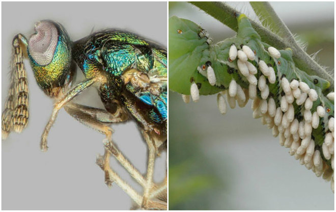 Mas lembre-se: quando não estão sendo parasitadas, as vespas fazem isso aí na imagem, parasitando outra espécie, como lagartas de borboleta