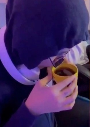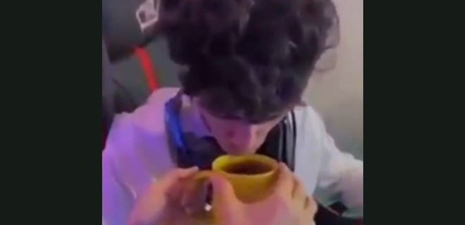 E entrega para a esposa, Alanoud, que desconfia do conteúdo do copo