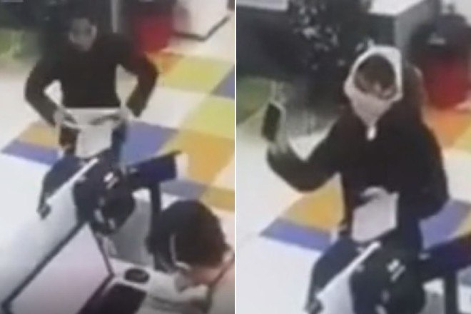 Segundo o jornal argentino Crónica, a situação bizarra foi registrada pela câmera de vigilância
