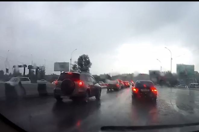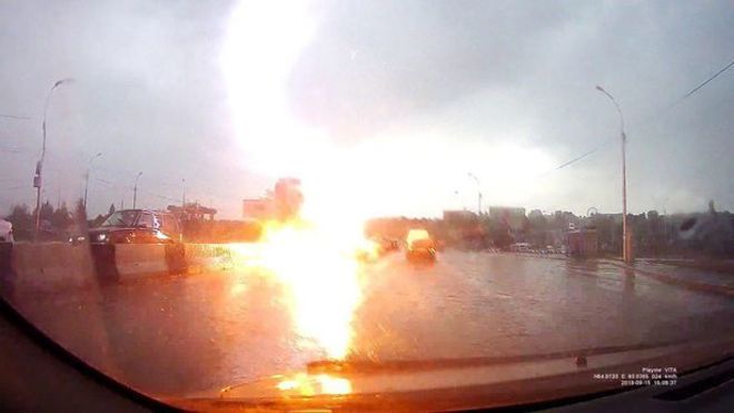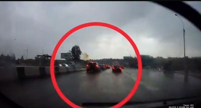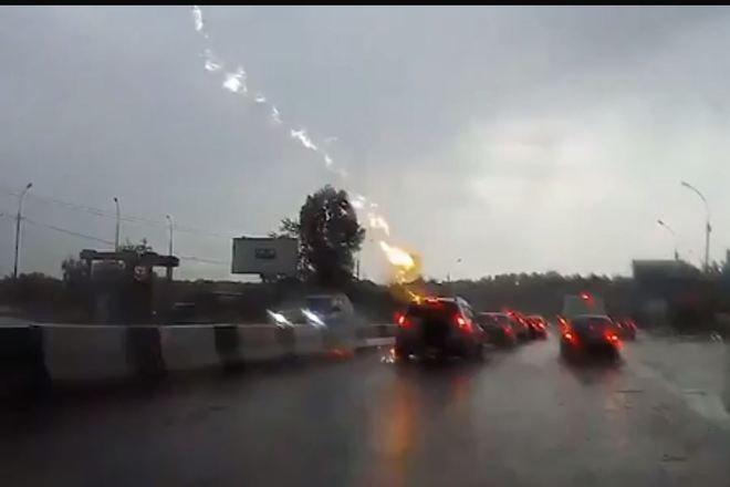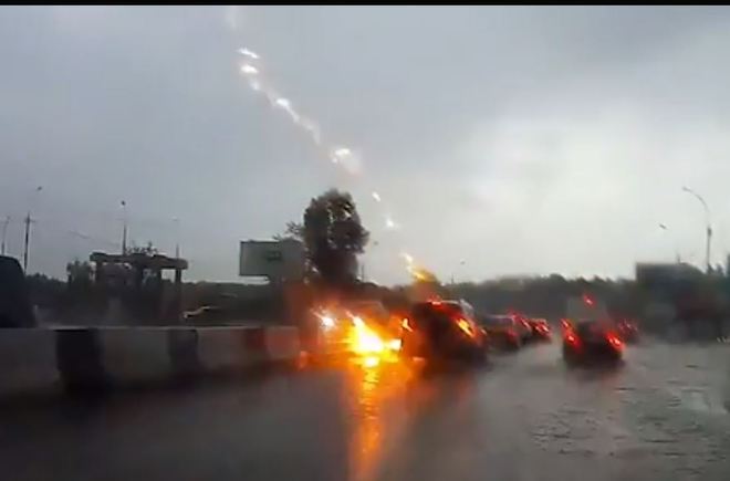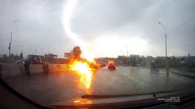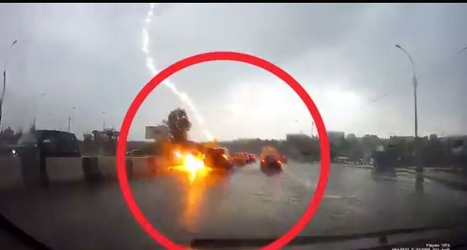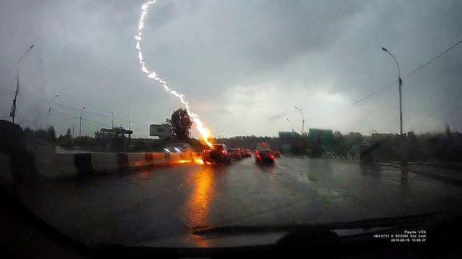 Seu vídeo (na Rússia, muitos carros possuem câmeras para evitar golpes de atropelamento) mostrou o momento exato em que o raio atingiu o carrão de Anna