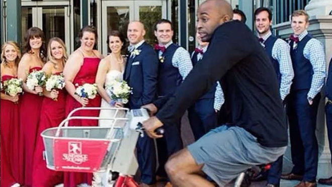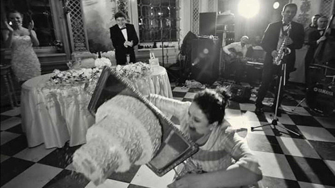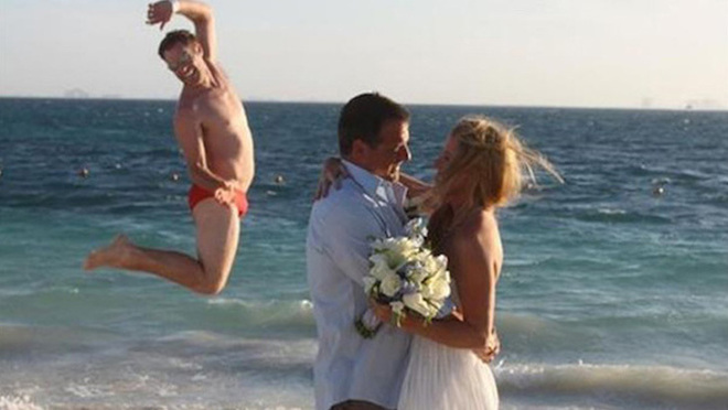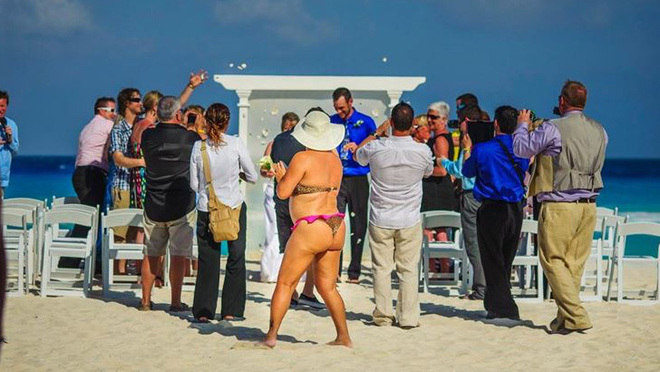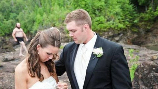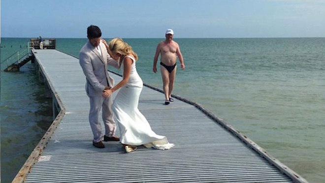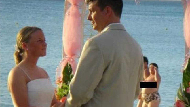 Quem estava mal posicionado: o fotógrafo, o casamento ou a banhista?