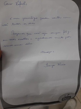 Até mostrou o desenho para o RH da empresa, e ganhou essa cesta especial!