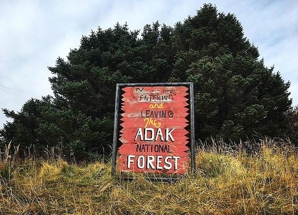 Nos anos 60, o local chegou a ter apenas uma árvore, por causa das condições climáticas brutais, e soldados colocaram uma placa sarcástica onde podia ser lido: "Você está entrando e saindo do Parque Nacional de Adak". Mais de cinco décadas depois, a placa ainda está lá, o reconhecimento veio, e agora existem 33 árvores lá, ninguém sabe se elas cresceram naturalmente ou por intervenção humana