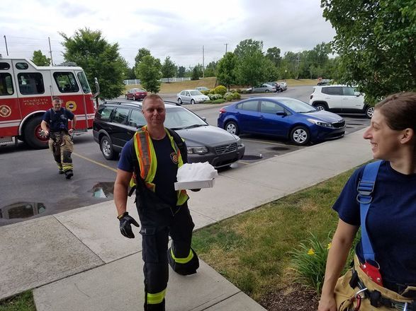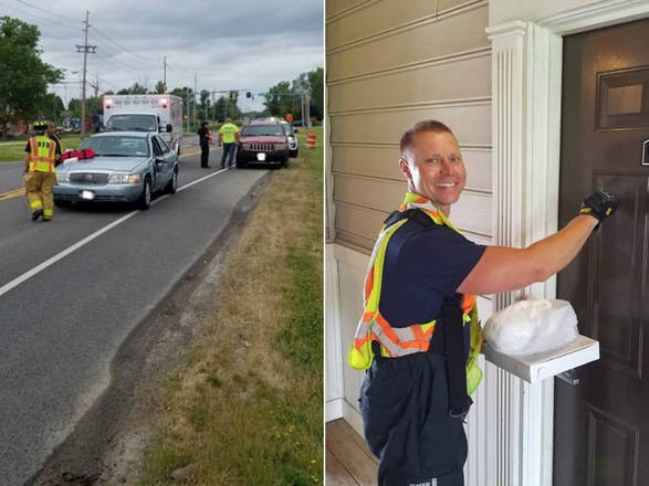 Os bombeiros do departamento de Henrietta, em Nova York, não apenas resgataram um entregador envolvido em um acidente de carro, como também levaram a pizza do delivery até o respectivo cliente