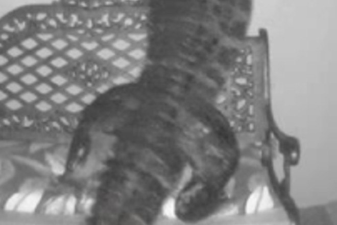 Ao checar o que acontecia, se deparou com o bicho escamoso empoleirado em um banco da residência