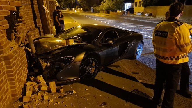 Policiais registraram o momento e o estrago causado por um motorista imprudente que bateu um carraço milionário no muro por não saber dirigir direito