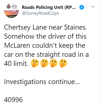 Segundo os policiais, que divulgaram o caso no Twitter, o homem aparentemente não conseguiu manter o carro na estrada