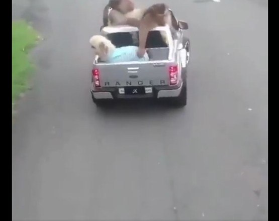 Em um dado momento, durante uma manobra de ré, eles até colocam a mão no canino para evitar que ele caia