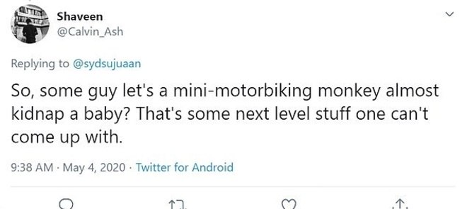 A ficção acabou de ser sugada por um vórtice gerado por um vídeo gravado na vila de Tanjungsari, na Indonésia. Um macaco em uma motinha possivelmente motorizada cruza uma viela e tenta sequestrar uma criança. Sim, nós também estamos tentando entender isso aí