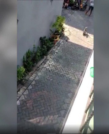O macaco só correu e encerrou o momento surreal quando um homem apareceu gritando e o espantou