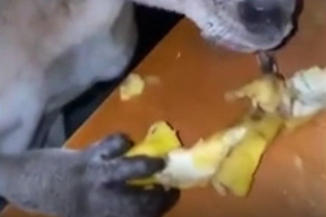 No entanto, o animal ignorou completamente o fato de ser indesejado e continuou a comer a banana