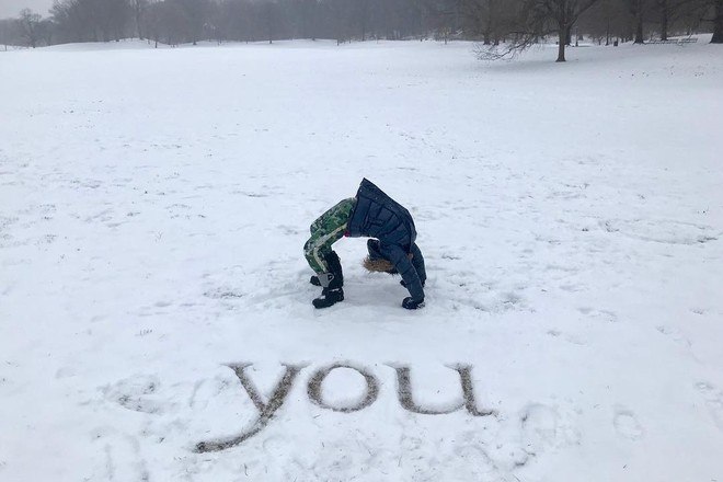 Uma escritora e ilustradora tem desenhado palavras na neve há aproximadamente sete anos para compor uma história