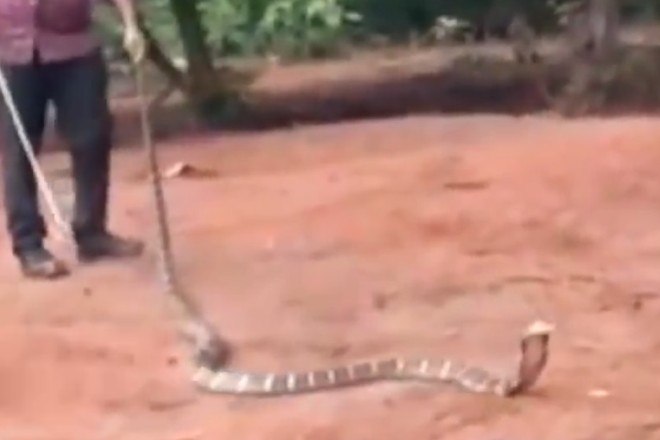 Segundo a emissora New Delhi Television, a serpente venenosa tinha entre 3,6 m e 4,5 m
