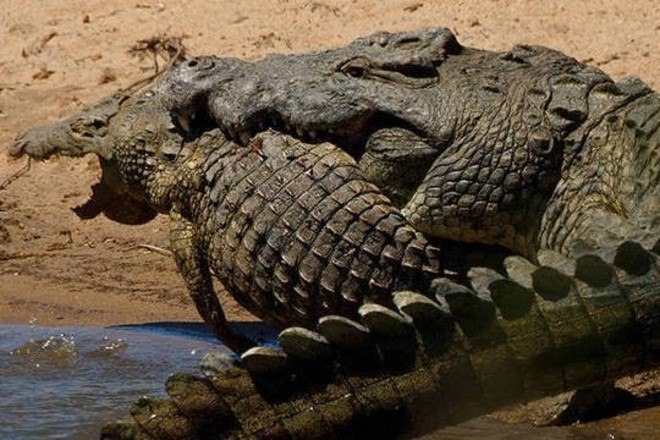 Um crocodilo com comprimento aproximado ao de um Celta (3,9 m x 3,7 m) foi flagrado durante um ato feroz de canibalismo, no Parque Nacional Kruger, na África do Sul