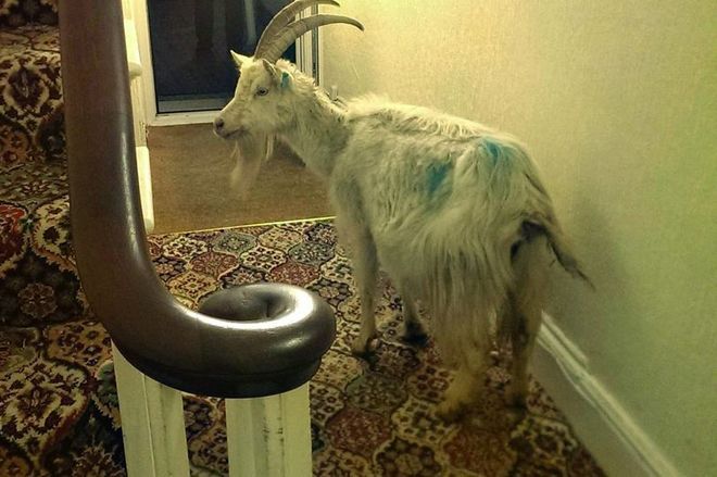 Após uma rápida olhada no hotel, Tracey percebeu que deixara a porta aberta após levar o cachorro dela para passear. Passado o susto do encontro, ela tirou a cabra das dependências do hotel e ainda precisou limpar o tapete, com devidamente cheio de fezes de cabras. Sinal dos novos tempos? Os animais querem morar em locais mais modernos? Só o tempo dirá!