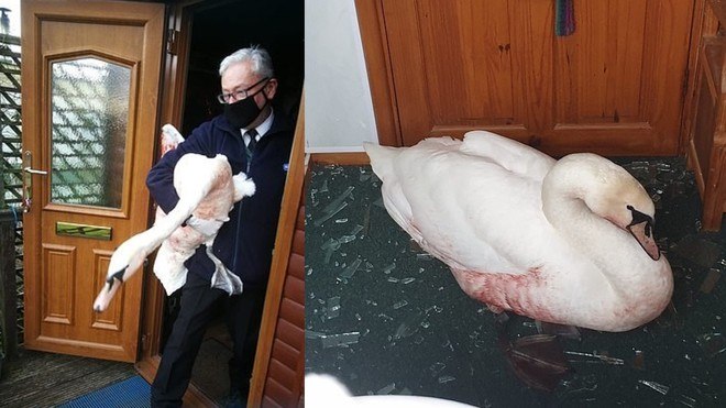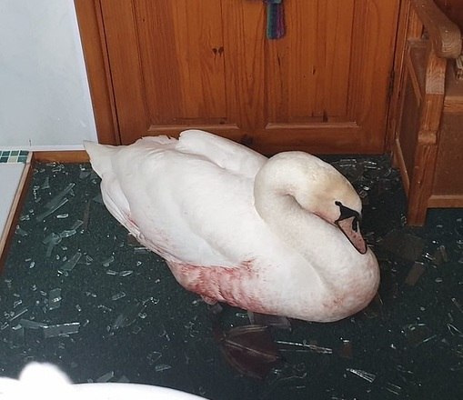 Após fazer força e conseguir entrar no cômodo, ela descobriu o motivo da explosão: um cisne, que parecia triste e estava completamente ensanguentado