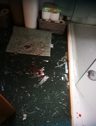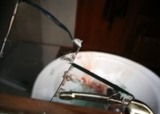 "Empurrei a porta do banheiro e ela não abriu, mas havia vidro por toda parte"