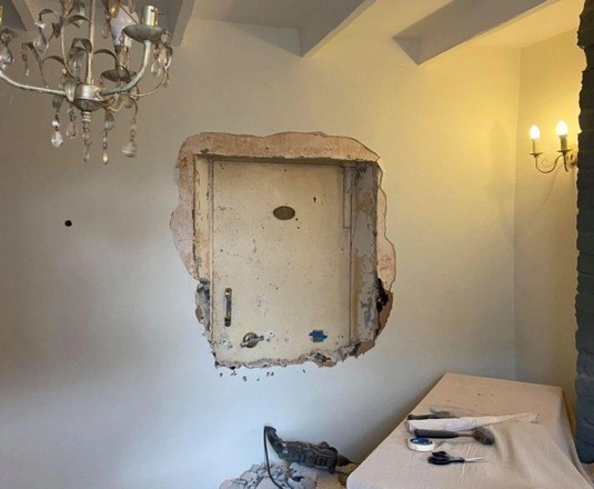 A tal descoberta é um cofre secreto que só pode ser acessado após quebrar uma parede, em meio a uma série de restaurações na propriedade