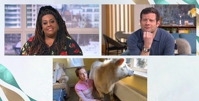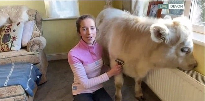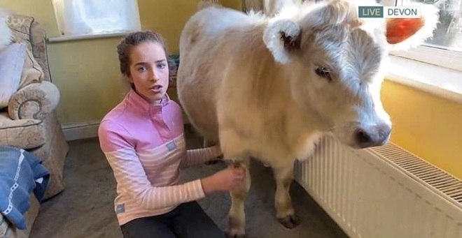 Esta é Honey, um bezerro que é parte da família da inglesa de Molly, de apenas 18 anos. O animal acabou de se tornar famoso em todo o Reino Unido após aparecer ao vivo na TV